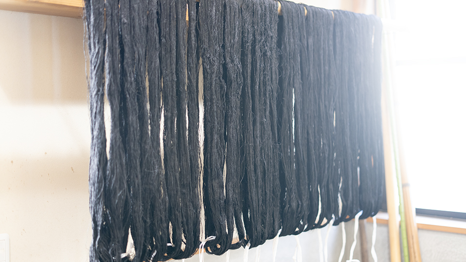 この色、綺麗な黒でしょ?何回も繰り返し染めてこの色になるんですよ。これで20回くらい染めたかな」
