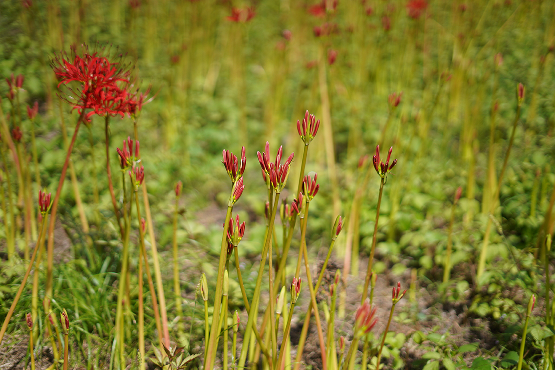 高台から群生を見渡すルートと、近道で赤の海に包まれるルートの二通りの楽しみ方ができるのも魅力です。時間と体力が許すのなら、ハイキングも兼ねて計画してはいかがでしょう。そろそろ山が赤く染まって来る頃ではないかしら。