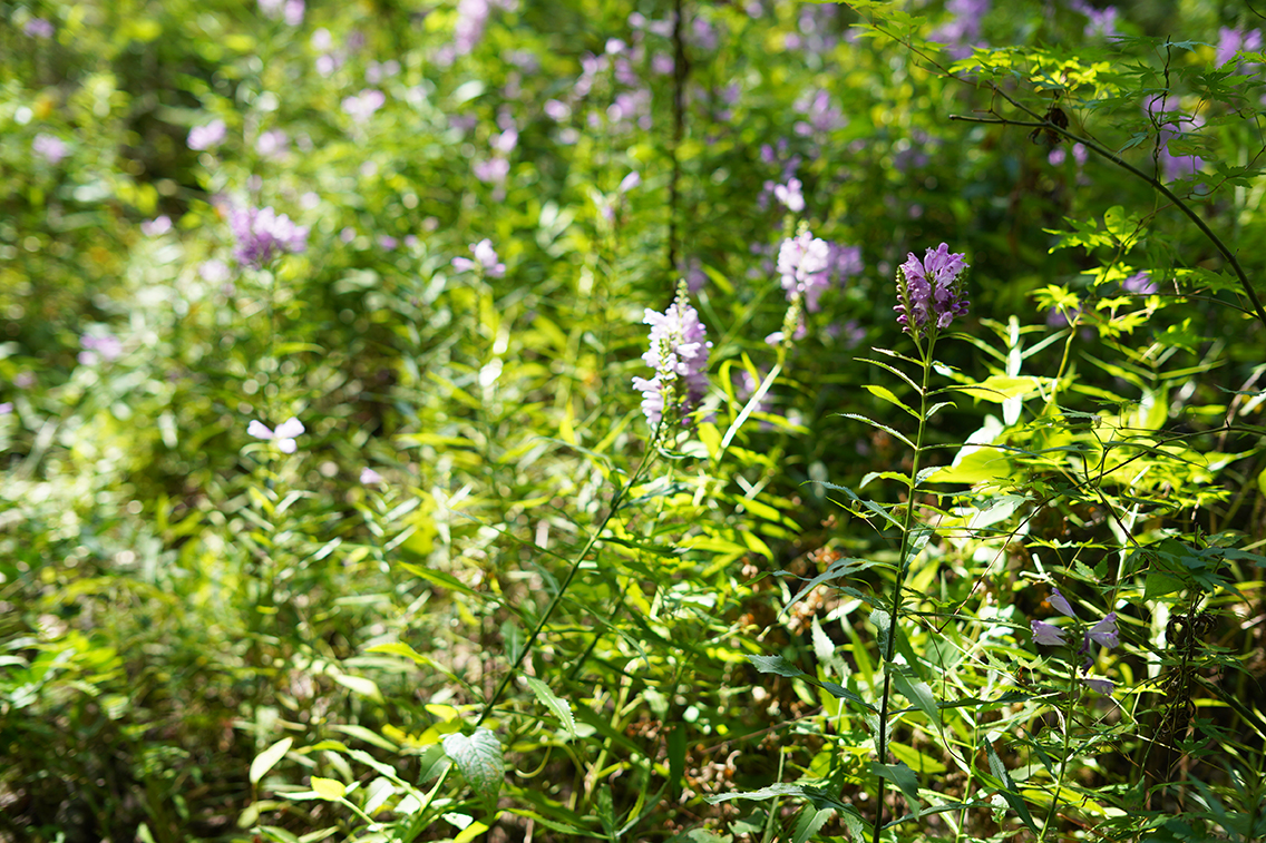 木々や草花を鑑賞しながら歩きます。私の好きな紫色の花「ハナトラノオ」が群生していました。私は、こういう趣が好きなんです。紫の清らかさが心を和ませてくれます。