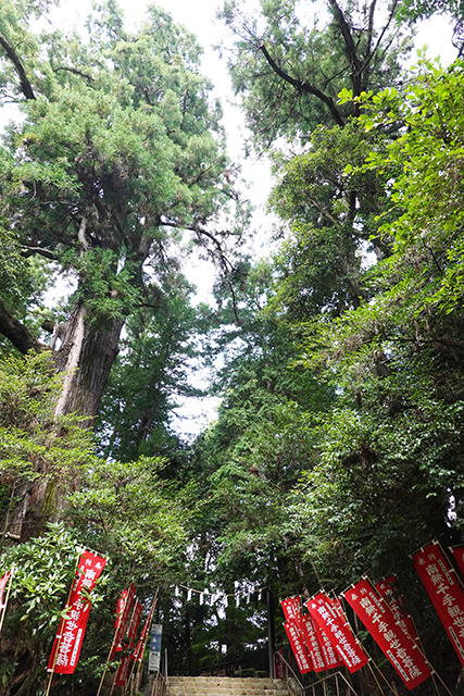 観音堂に登る道のある大杉「両側にあるため、塩船観音の夫婦杉」と呼ばれています。東京都の指定天然金物です。