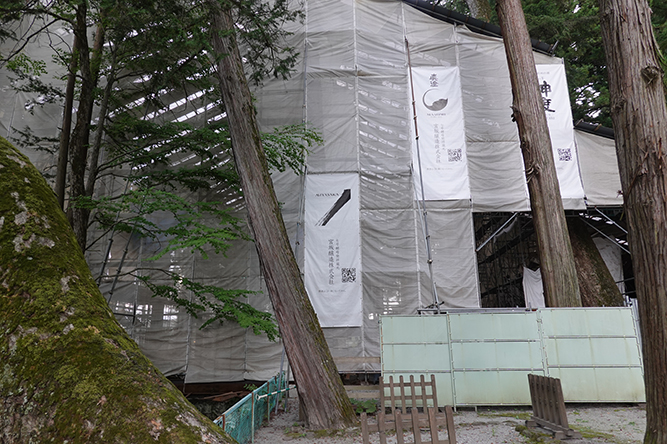 力強さを感じました。7年に一度の御柱祭で社殿の四隅のもみの木を建て替えます。次は、2028年です。