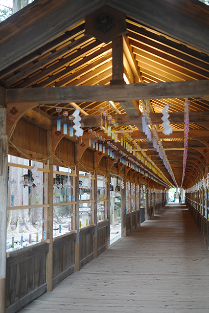 境内の布橋には約1000個の風鈴が吊るされ、風に揺れて一斉に鳴り響いていました。澄んだ音が雷鳴の気配と重なり、不思議と心を静めてくれます。