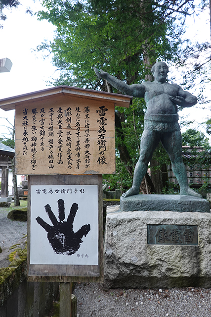 伝説の最強力士、雷電為右衛門さんの像と、手形がありました。原寸大という手形。